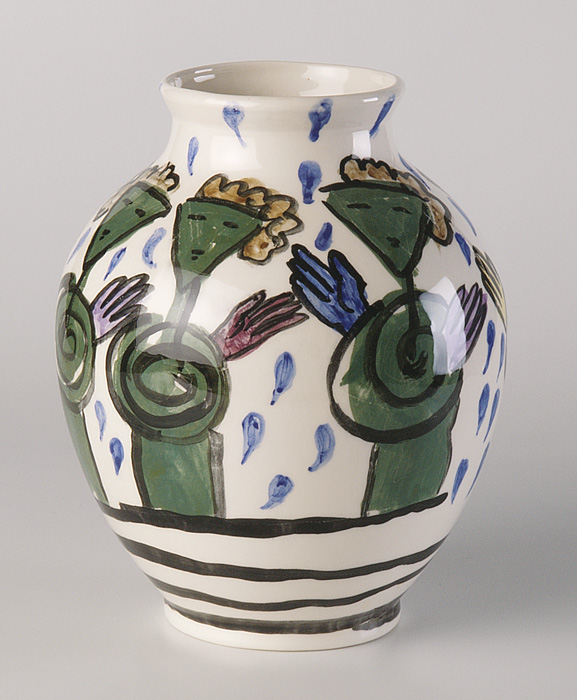 Neben dem Reiz des plastischen Formens und ungewohnten Malgründen und -Mitteln, den sich beim Brand farblich stark verändernden Glasuren, stellt diese Malerei auf Keramik zunächst eine Herausforderung dar, bringt als Ergebnis nach dem Brand jedoch Farben von unübertroffener Leuchtkraft und Dichte hervor.