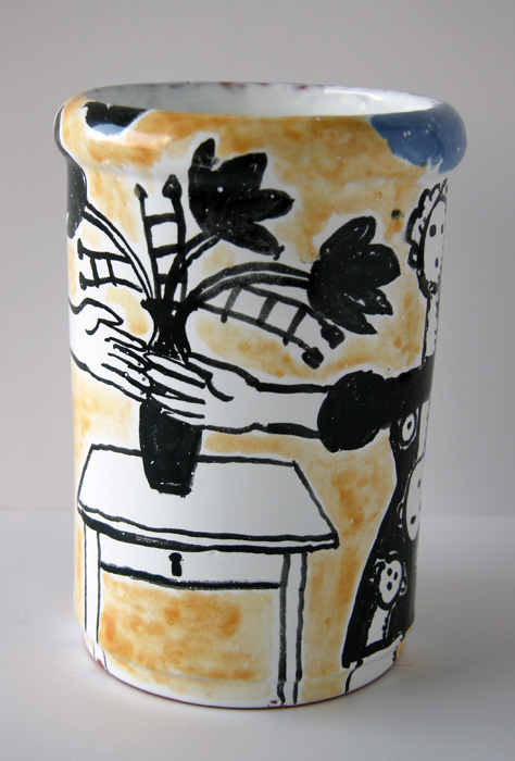 Zudem hatte Achim Fischel eine Freundin, die in der Karlsruher Majolika als Keramikmalerin arbeitete und später bei Joseph Beuys studierte. In den 80er Jahren, lernt er ein Töpfer-Ehepaar in Südfrankreich kennen und kann dort  einige Wochen arbeiten. Zurück in Deutschland, beginnt er jetzt regelmäßig Keramiken zu bemalen.