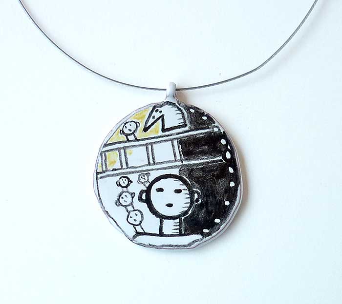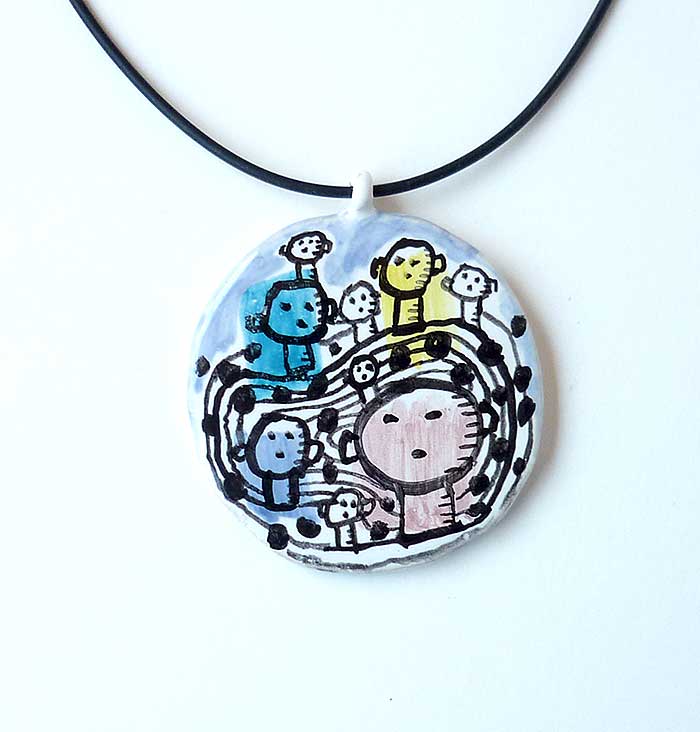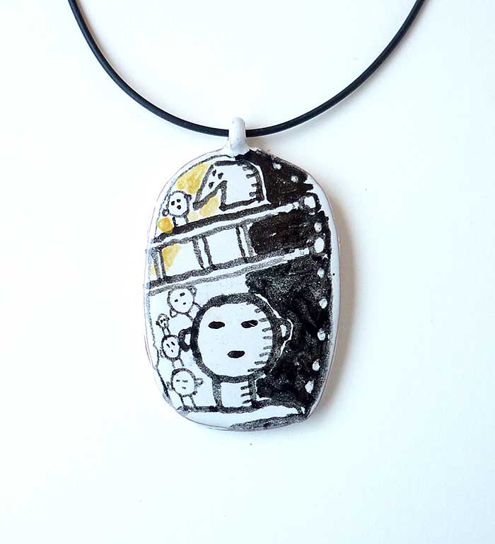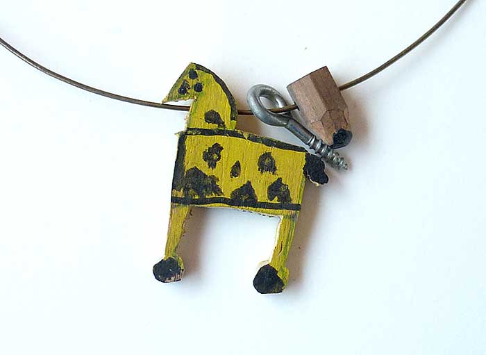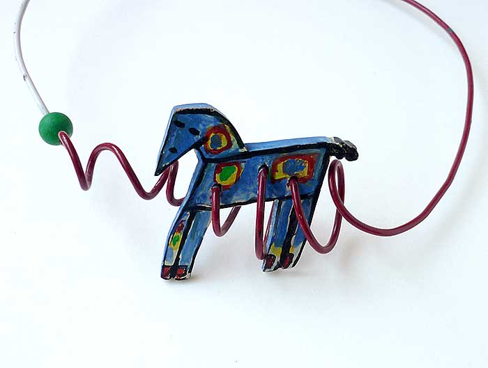Auch später entstanden immer wieder neue Schmuckstücke, teil aus Fundstücken, Schrauben, Metallteilen, Perlen, Bernsteinkugeln u.s.w. Er kaufte einen kleinen Brennofen, um sowohl örtlich als auch zeitlich, unabhängig zu sein.
