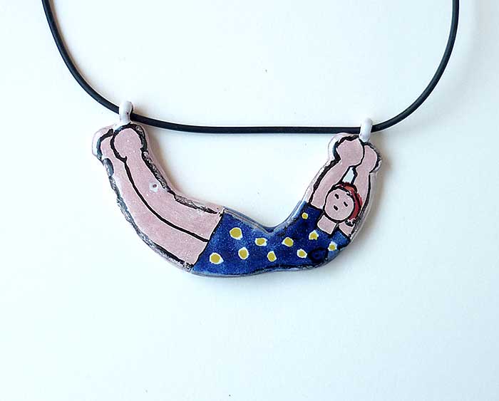 Als er nämlich für seinen Professor das Gipsmodell einer Keramikwand modellierte und dieses am nächsten Tag zerbrochen vorfand, nahm er ein interessantes Teil davon, bearbeitete es, ließ es in Silber gießen und von einem Goldschmied eine Öse anlöten. Das erste moderne Schmuckstück war entstanden und es folgten Weitere.